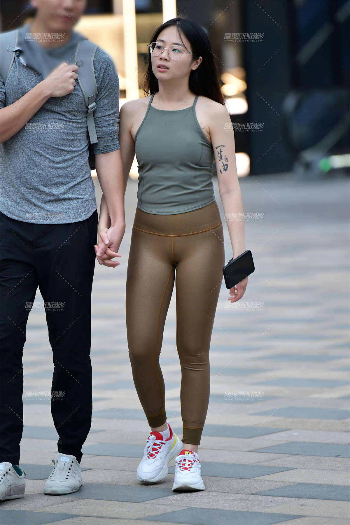 ★逛街绛红紧身裤美女
