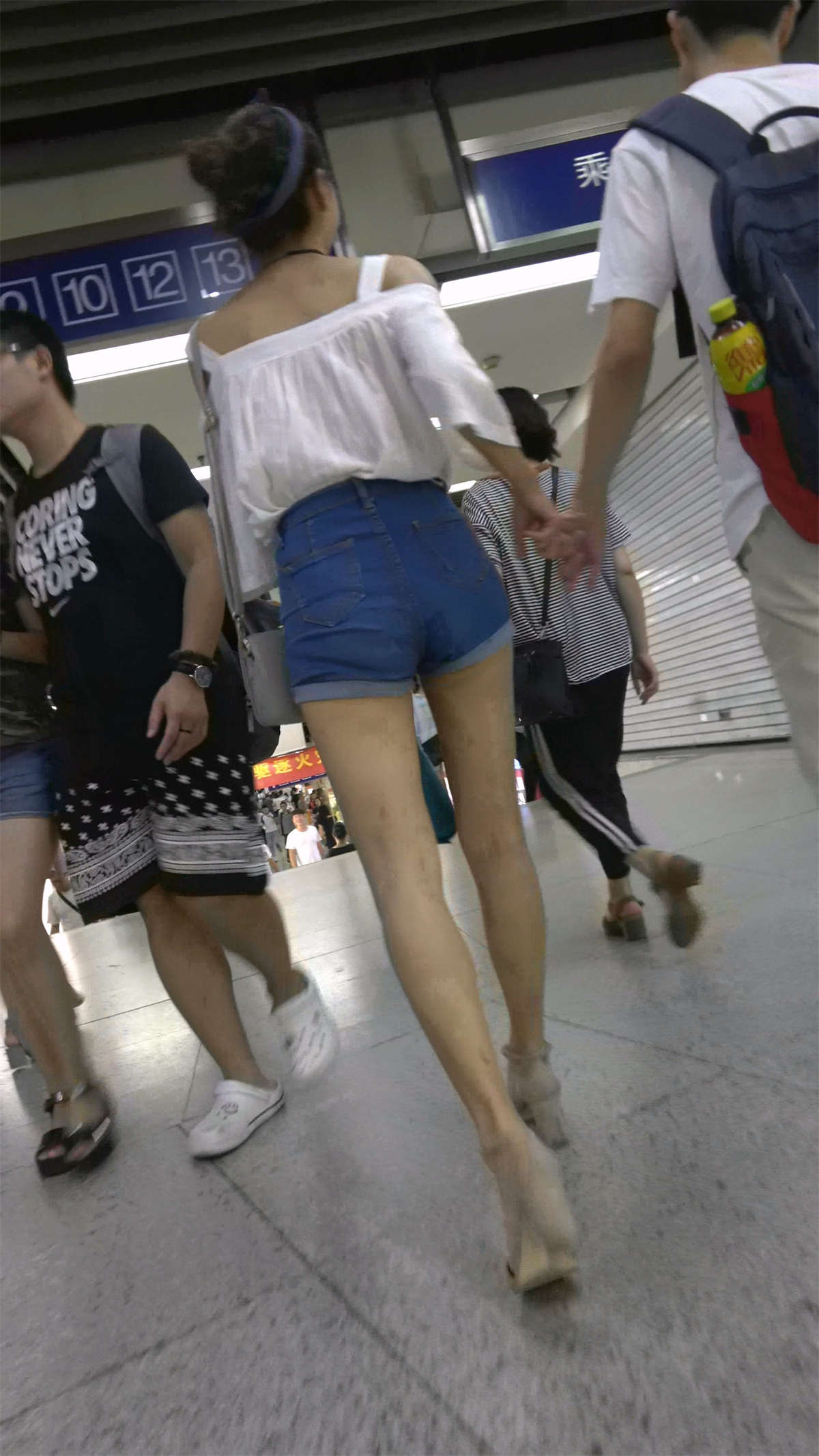 高腰牛仔热裤白衬衫高挑美腿